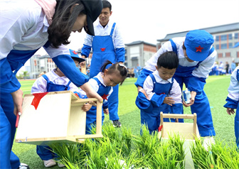 清澈蓝天,微风拂面。金色摇篮的家长和孩子们组成工农兵方阵,严阵以待等候口令指挥。在生产大队长的正式宣布下,本次大生产活动正式拉开帷幕!