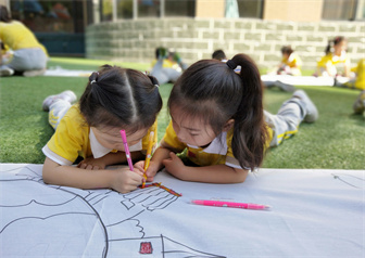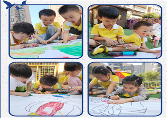 为了激发幼儿的爱国情感和民族自豪感,我园组织幼中班、幼大班的幼儿在操场上绘制长卷。孩子们用稚嫩的笔触画出心中的国旗、长城、天安门,表达他们对祖国的热爱之情!
